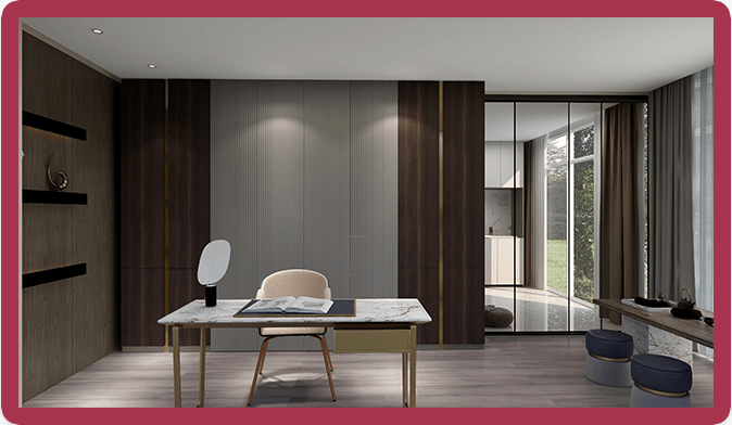 2.书房和茶室合并,与自然融为一体,展现一个更加舒适的休息工作环境